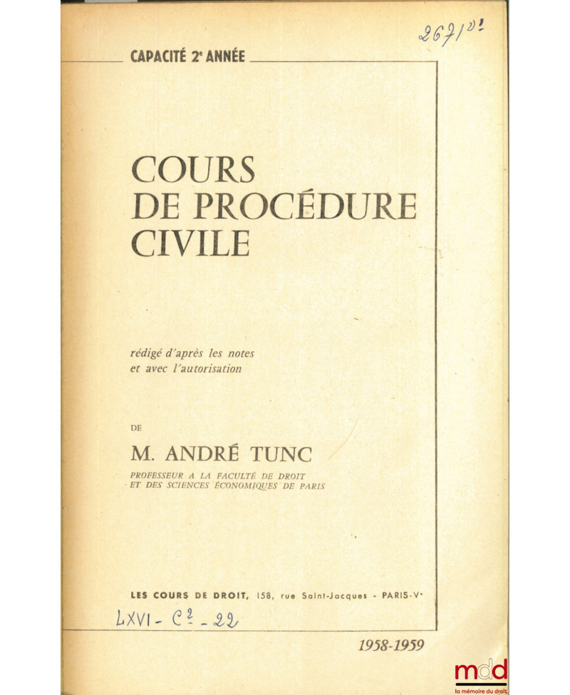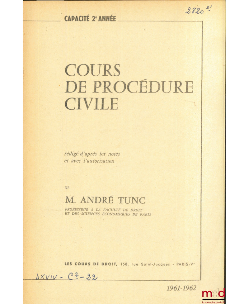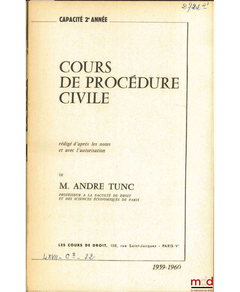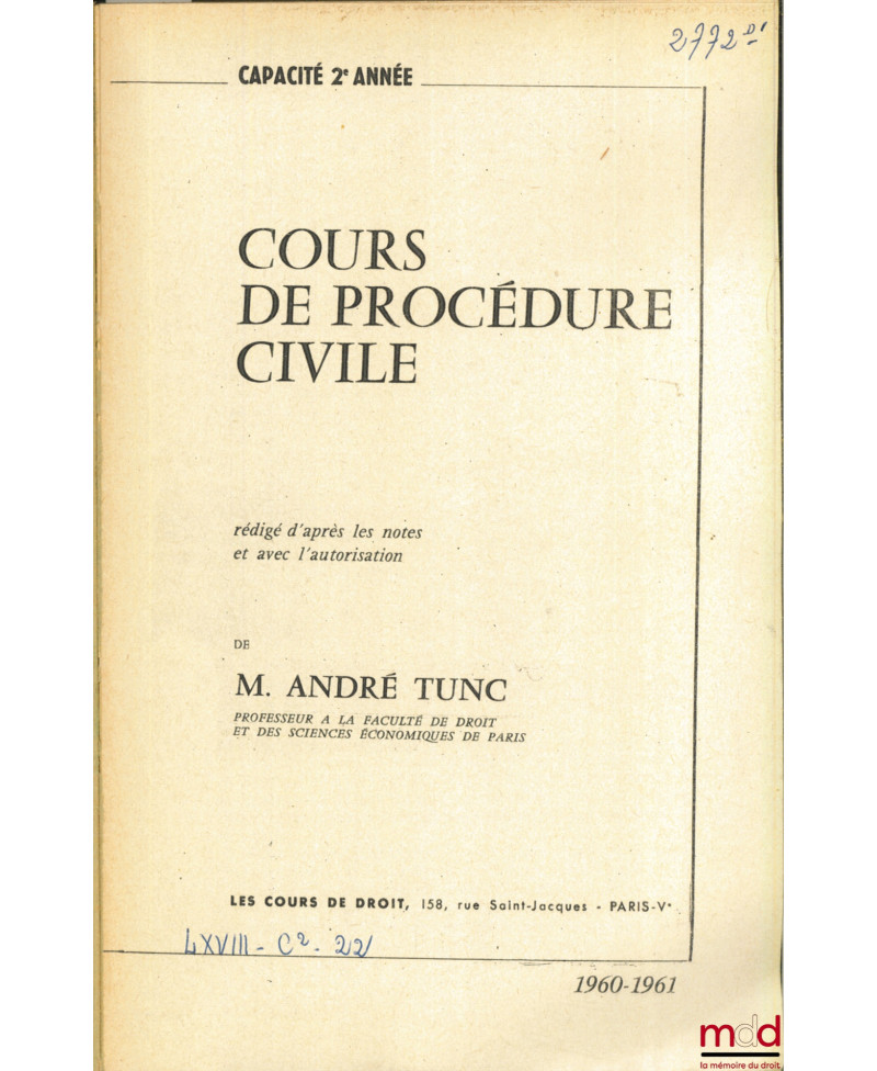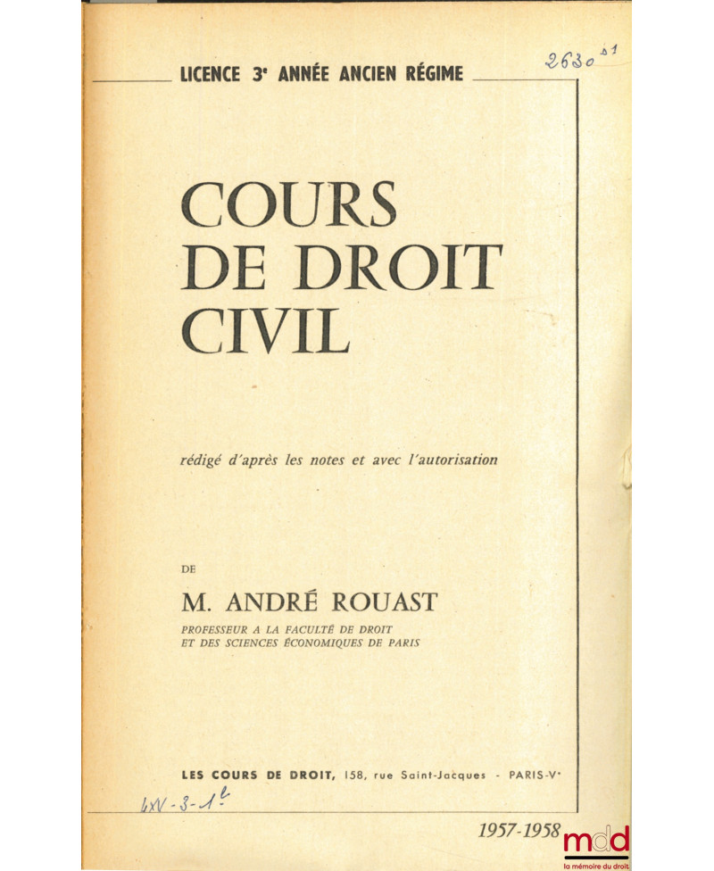 COURS DE DROIT CIVIL, Capacité 1ère année, 1971-1972