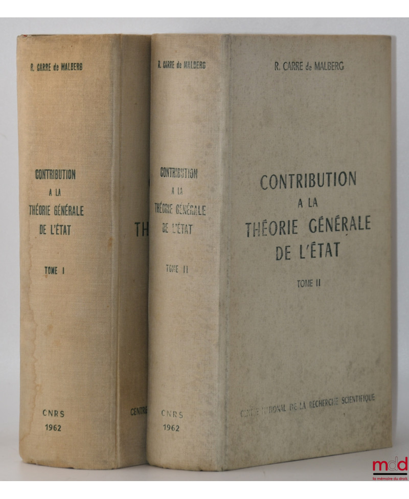 CONTRIBUTION À LA THÉORIE GÉNÉRALE DE L’ÉTAT, spécialement d’après les données fournies par le Droit constitutionnel français, [réimpression de...