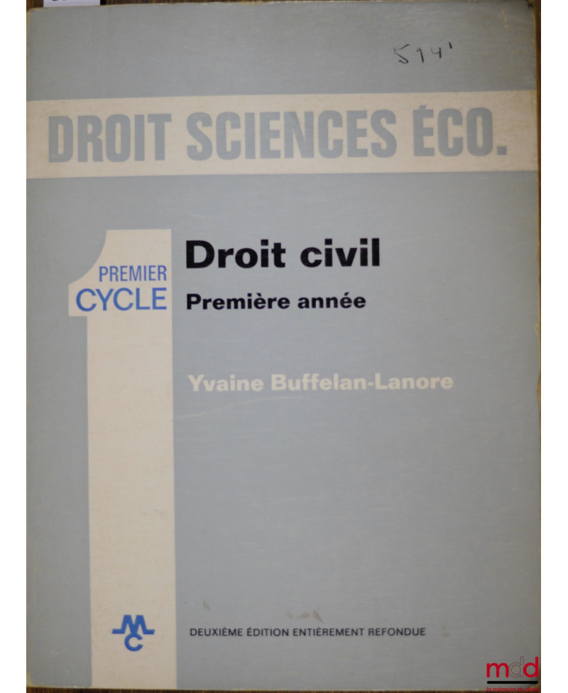 DROIT CIVIL PREMIÈRE ANNÉE, 2ème éd. entièrement refondue, coll. Droit sciences économiques