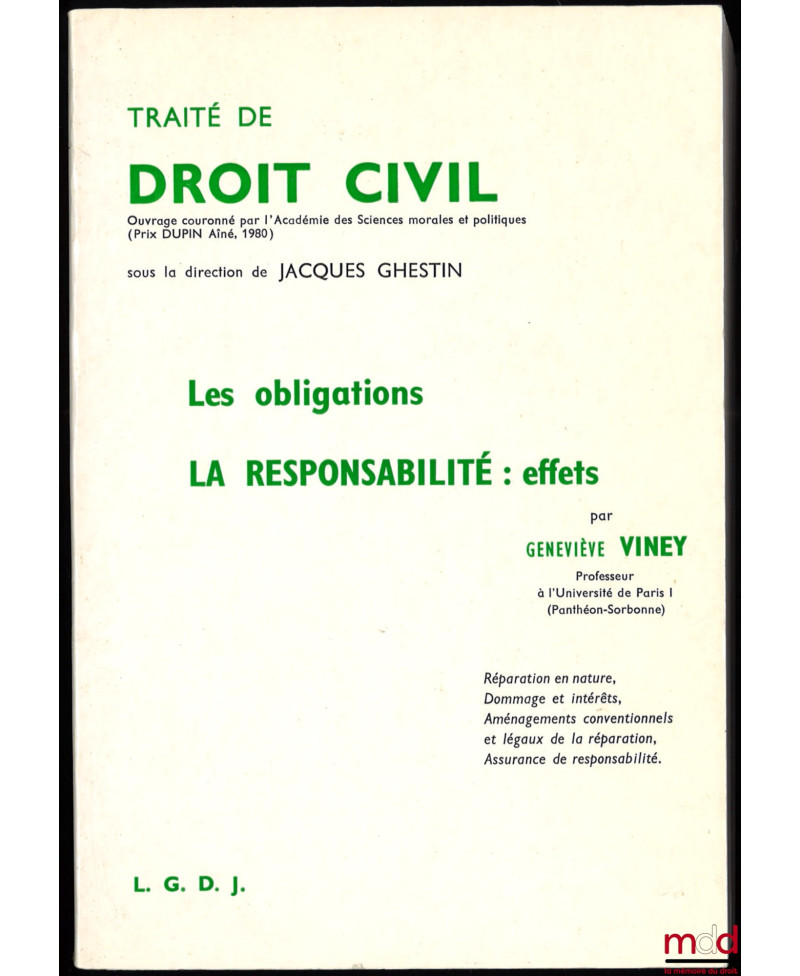 LES OBLIGATIONS. LA RESPONSABILITÉ : EFFETS. Réparation en nature, Dommage et intérêts, Aménagement conventionnels et légaux de la réparation,...