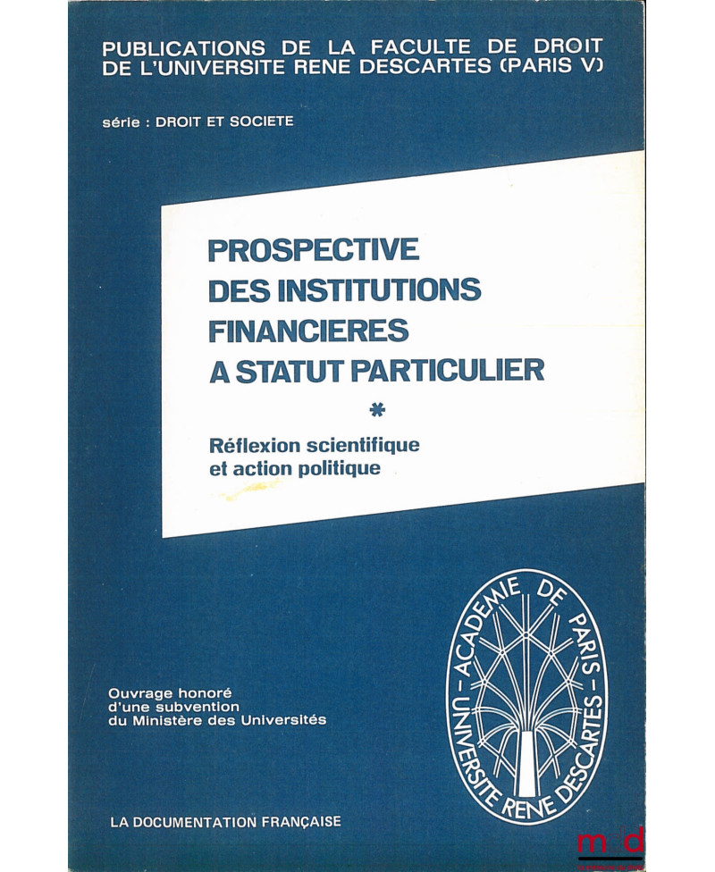 PROSPECTIVE DES INSTITUTIONS FINANCIÈRES À STATUT PARTICULIER, Réflexion scientifique et action politique, Publ. de la Faculté de droit de...