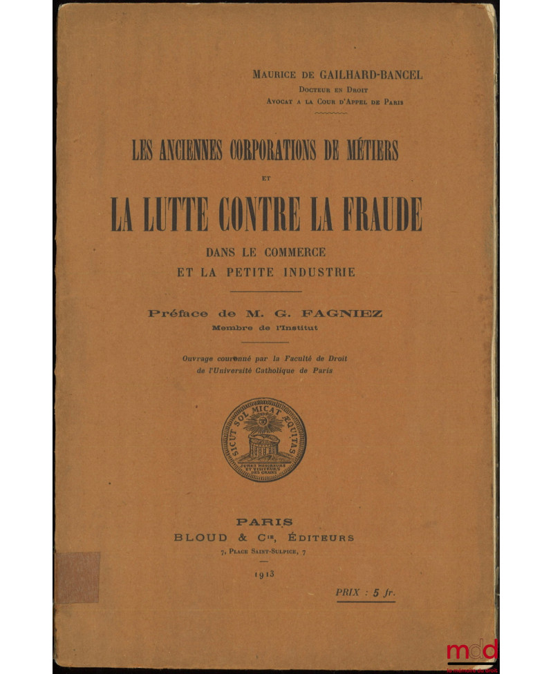 LES ANCIENNES CORPORATIONS DE MÉTIERS ET LA LUTTE CONTRE LA FRAUDE Dans le commerce et la petite industrie, Préface de M. G. Fagniez