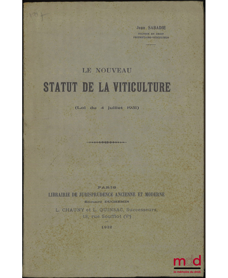 LA RESPONSABILITÉ DU FAIT DES CHOSES INANIMÉES, Thèse, Université Égyptienne - Faculté de droit