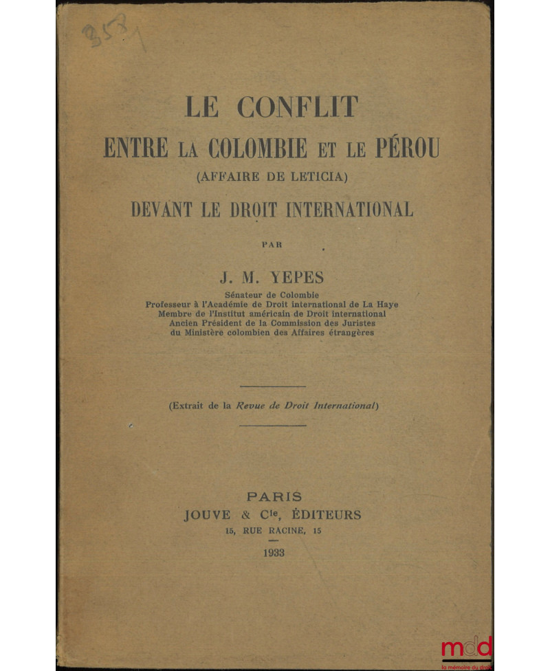 LE CONFLIT ENTRE LA COLOMBIE ET LE PÉROU (Affaire de Leticia) devant le droit international, (Extrait de la Revue du Droit international)