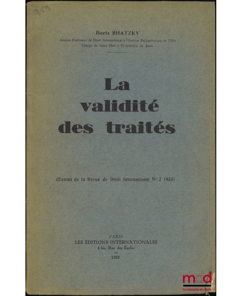 LA VALIDITÉ DES TRAITÉS, Extrait de la Revue de Droit International, n° 2