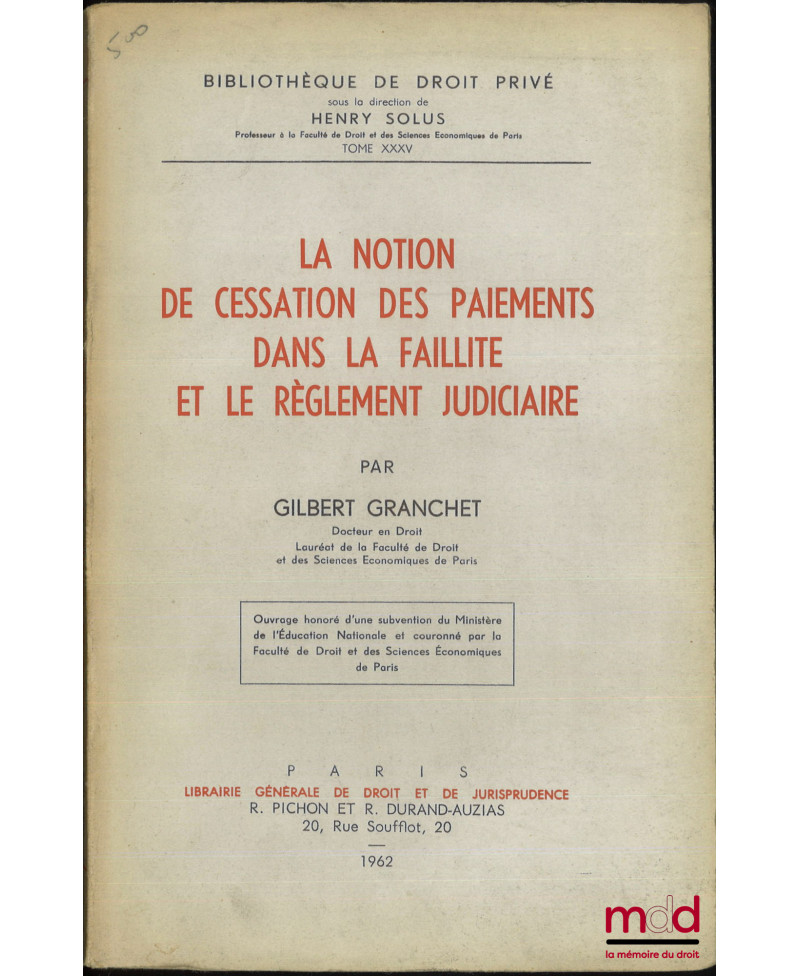 L’OBLIGATION DE GARANTIE DANS LE LOUAGE DE CHOSES, Préface de André Tunc, Bibl. de droit privé, t. XXXVI