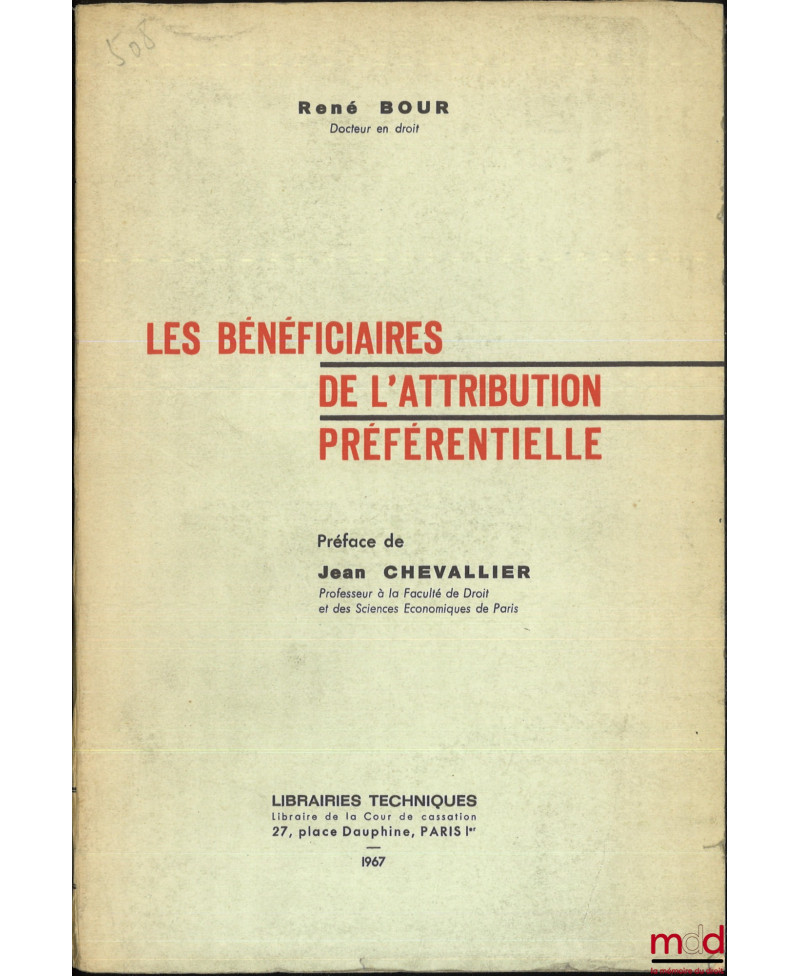 LES BÉNÉFICIAIRES DE L’ATTRIBUTION PRÉFÉRENTIELLE, Préface de Jean Chevallier