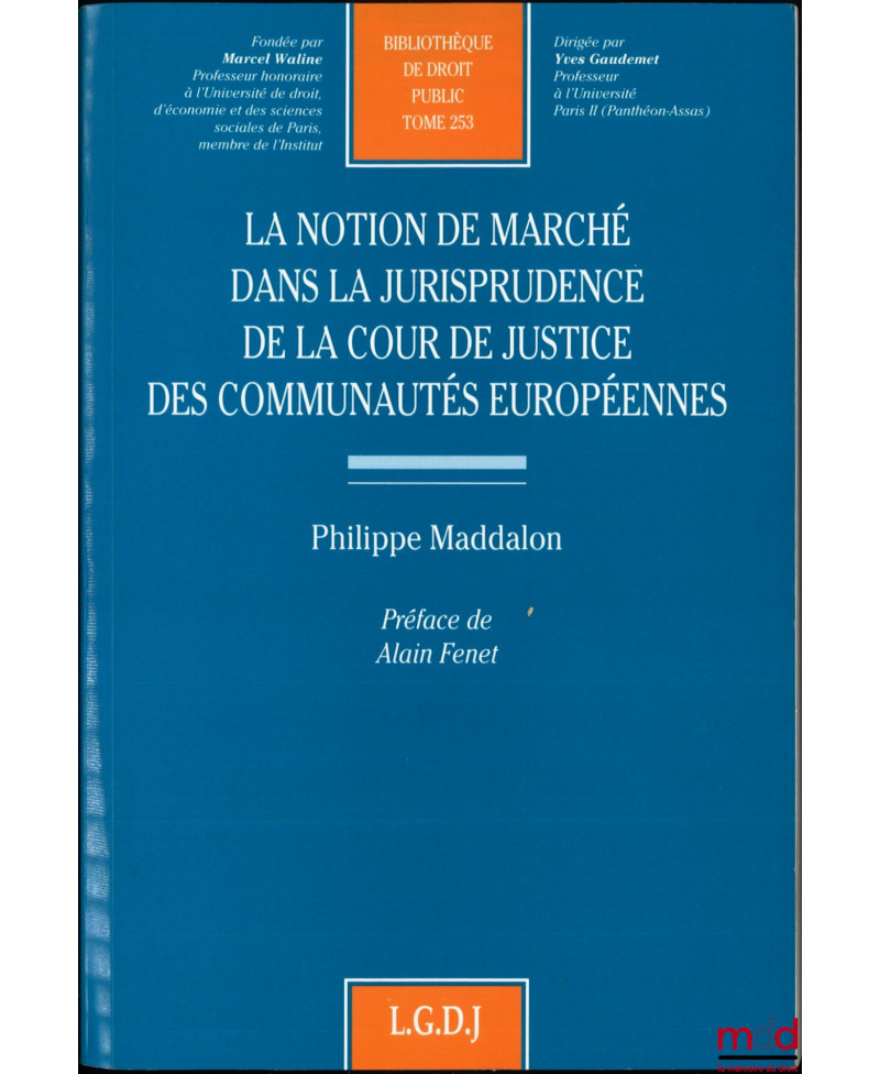 LA NOTION DE MARCHÉ DANS LA JURISPRUDENCE DE LA COUR DE JUSTICE DES COMMUNAUTÉS EUROPÉENNES, Préface de Alain Fenet, Bibl. de droit public, t. 253