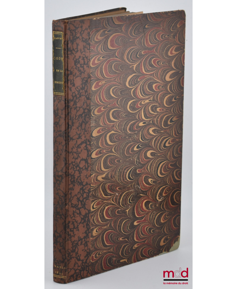 CODE PRATIQUE DE LA PRESSE ET DE L’IMPRIMERIE, Contenant près de 2000 décisions judiciaires avec références aux divers recueils de jurisprudence