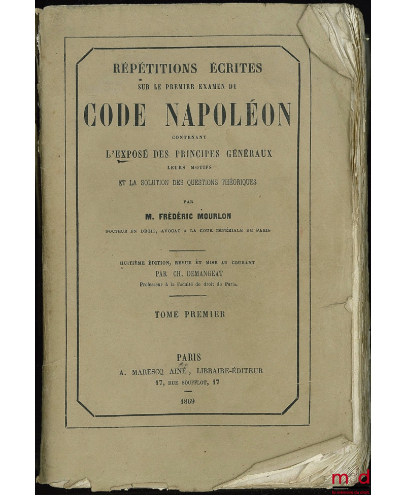 RÉPÉTITIONS ÉCRITES SUR LES TROIS EXAMENS DE CODE NAPOLÉON, CONTENANT L’EXPOSÉ DES PRINCIPES GÉNÉRAUX, LEURS MOTIFS ET LA SOLUTION DES QUESTIONS...