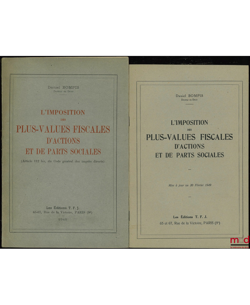 L’IMPOSITION DES PLUS-VALUES FISCALES D’ACTIONS ET DE PARTS SOCIALES (Article 112 bis, du Code général des impôts directs) avec une Mise à jour au...
