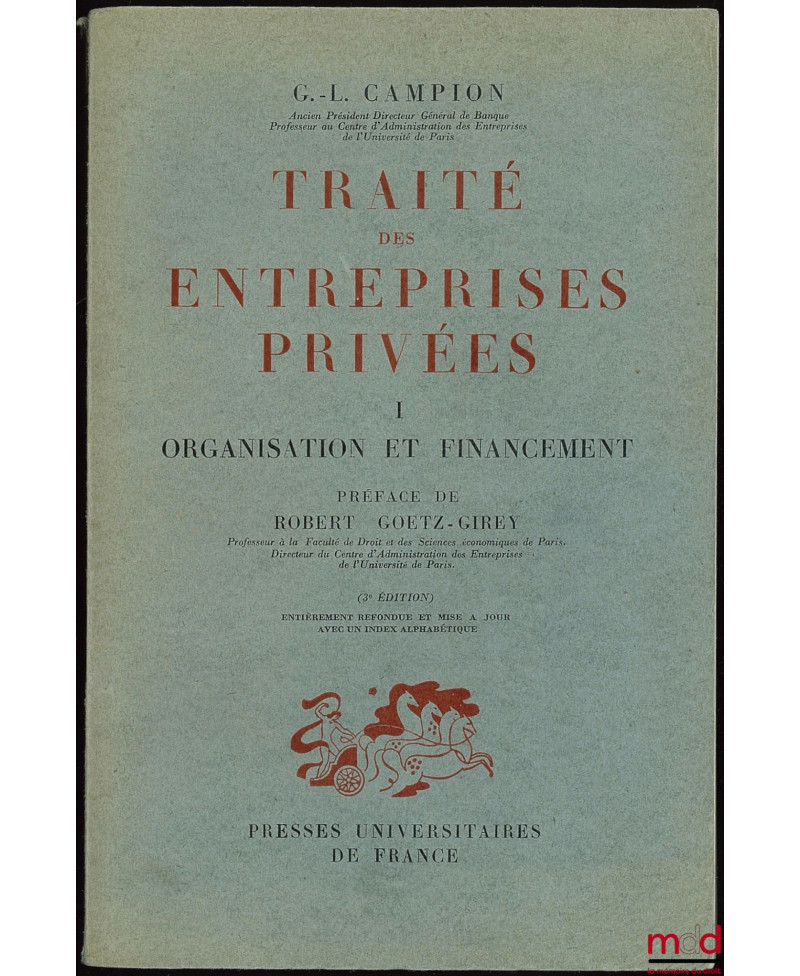 TRAITÉ DES ENTREPRISES PRIVÉES, I : Organisation et financement, 3ème éd., Préface de Robert Goetz-Girey