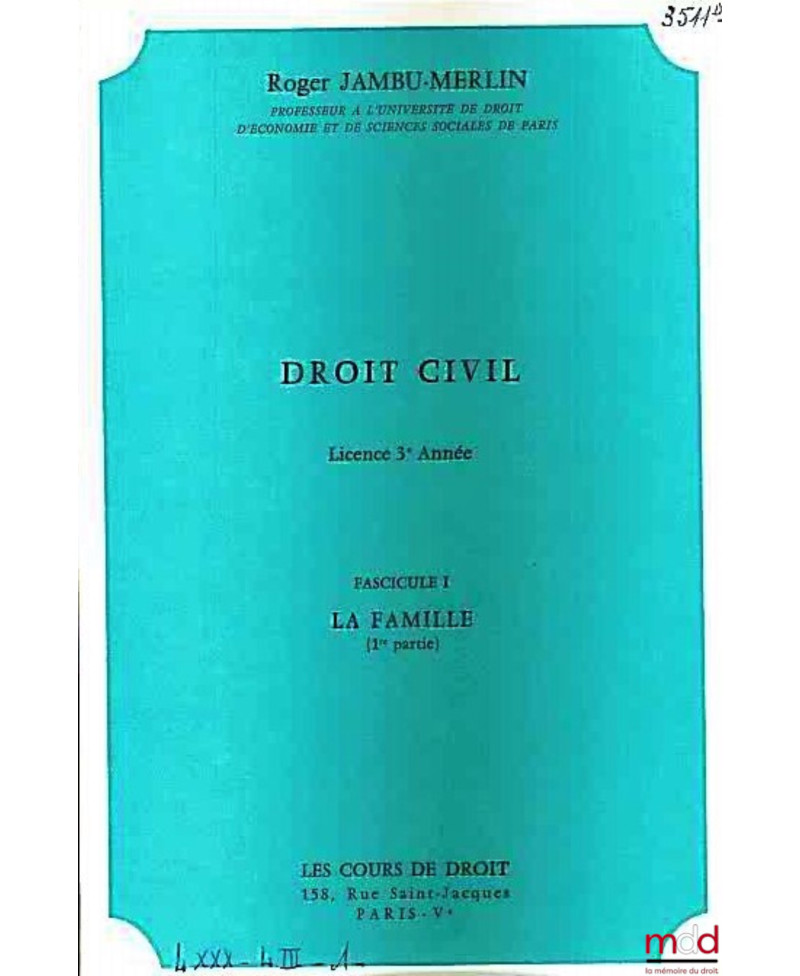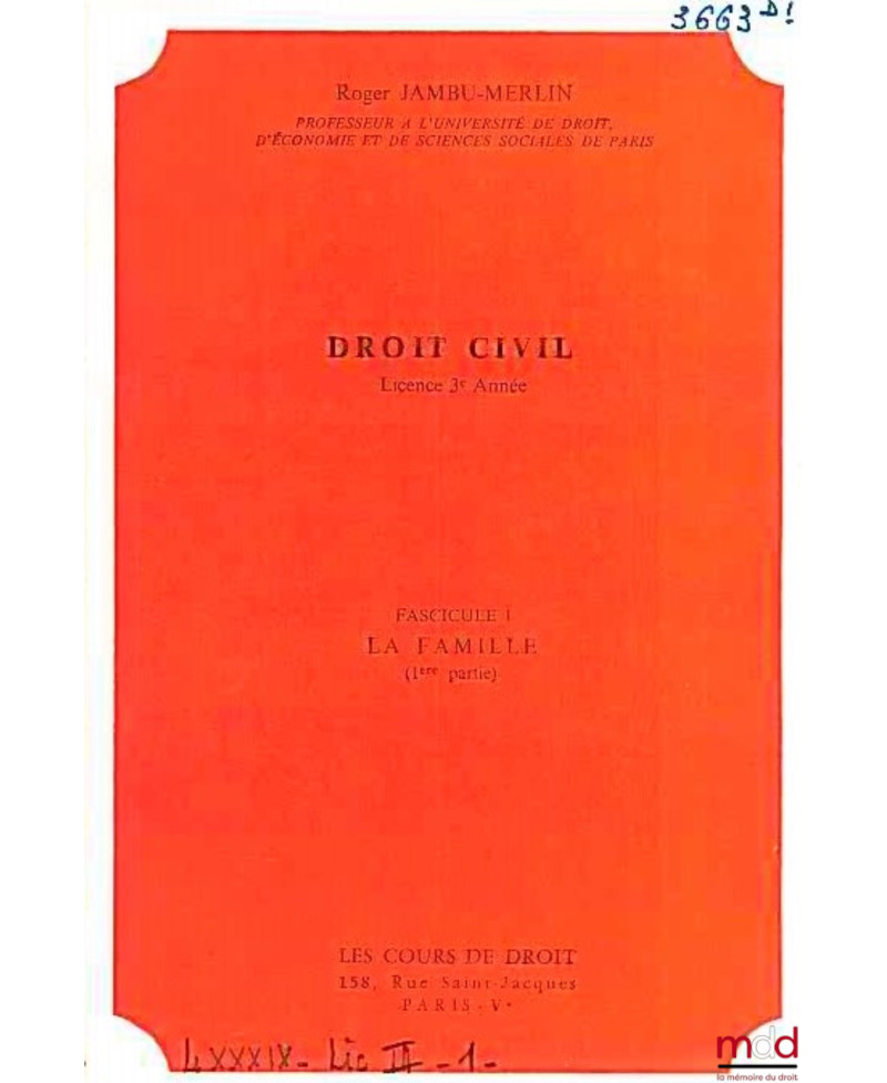LE DROIT PRIVÉ EN TUNISIE, Préface de Gabriel Le Bras, Institut de droit comparé de l’Université de Paris, série Les systèmes...