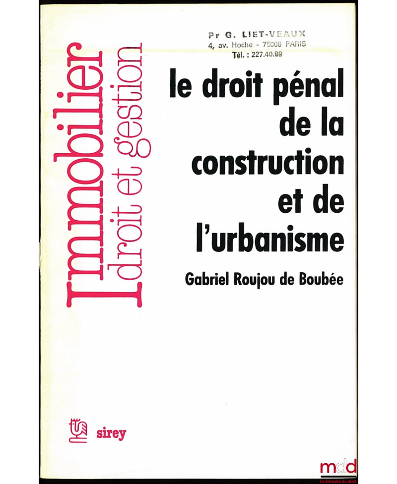 LE DROIT PÉNAL DE LA CONSTRUCTION ET DE L’URBANISME, coll. Immobilier droit de gestion