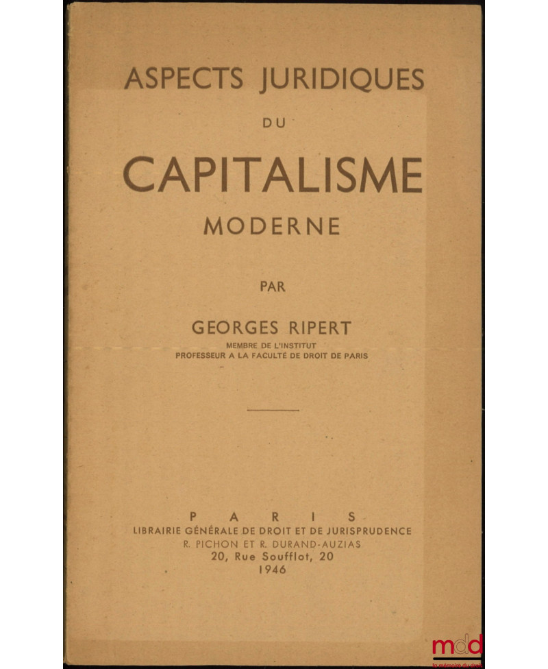 Quick view Add to cart Add to wishlist Add to compare Droit moderne (XX-XXIe siècles) RIPERT (Georges) ASPECTS JURIDIQUES DU CAPITALISME MODERNE Price ASPECTS JURIDIQUES DU CAPITALISME MODERNE