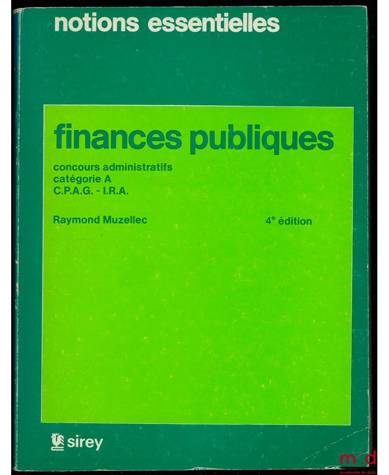 FINANCES PUBLIQUES, Concours administratifs catégorie A, C.P.A.G. - I.R.A., 3ème éd., coll. Notions essentielles