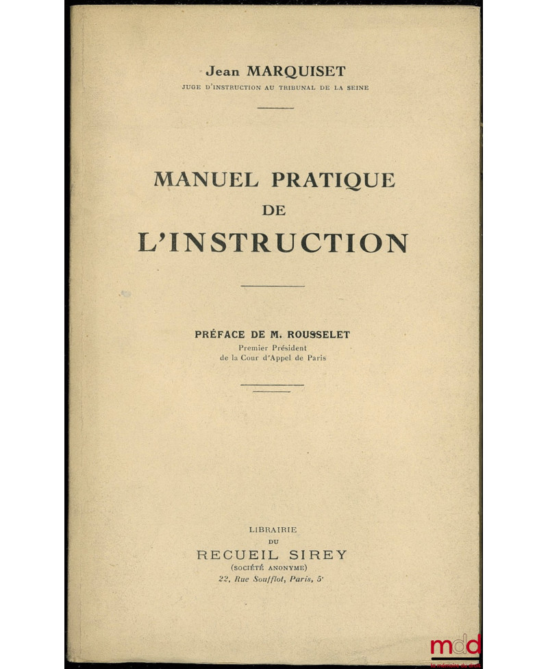 Quick view Add to cart Add to wishlist Add to compare Droit moderne (XX-XXIe siècles) MARQUISET (Jean) MANUEL PRATIQUE DE L’INSTRUCTION, Préface de M. ROUSSELET Price MANUEL PRATIQUE DE L’INSTRUCTION, Préface de M. ROUSSELET