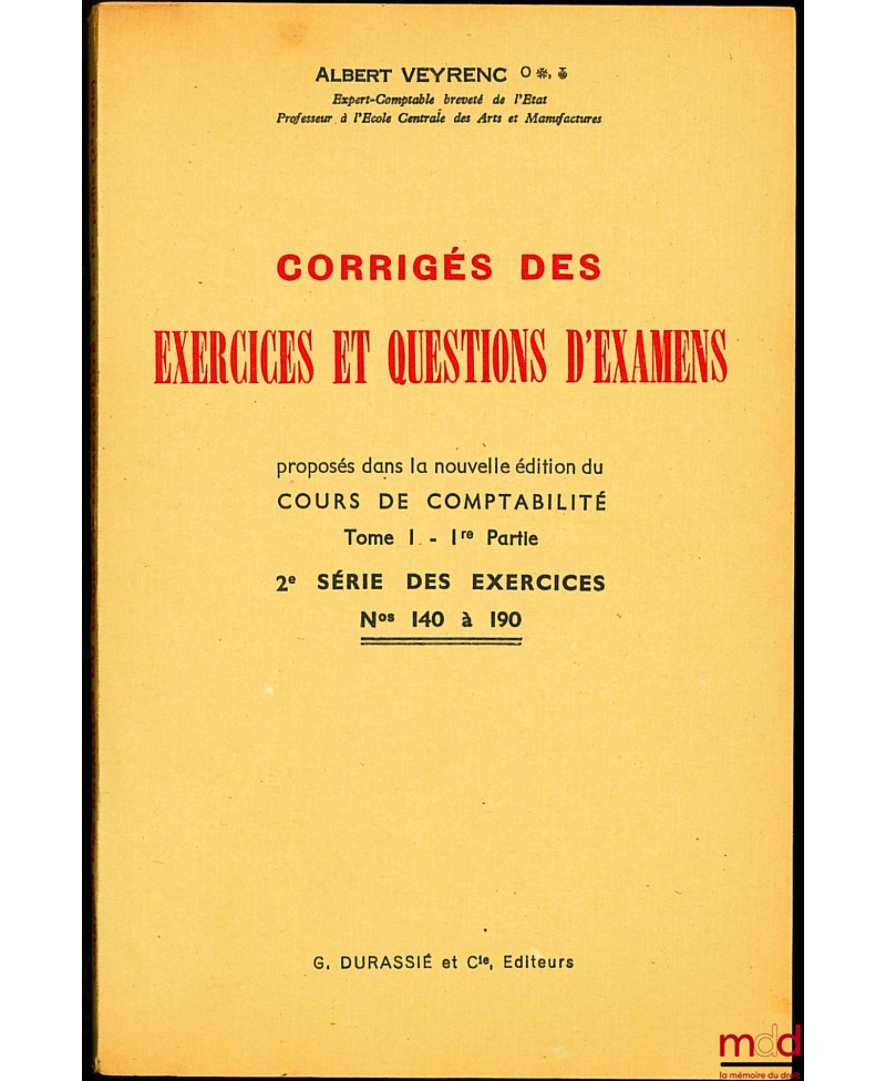 CORRIGÉS DES EXERCICES ET QUESTIONS D’EXAMENS, proposés dans la nouvelle éd. du cours de comptabilité, t. 1, 1re partie, 2e s...