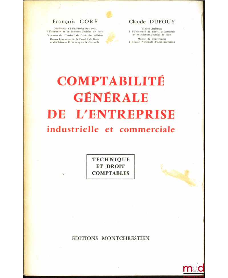 COMPTABILITÉ GÉNÉRALE DE L’ENTREPRISE INDUSTRIELLE ET COMMERCIALE, Technique et droit comptable