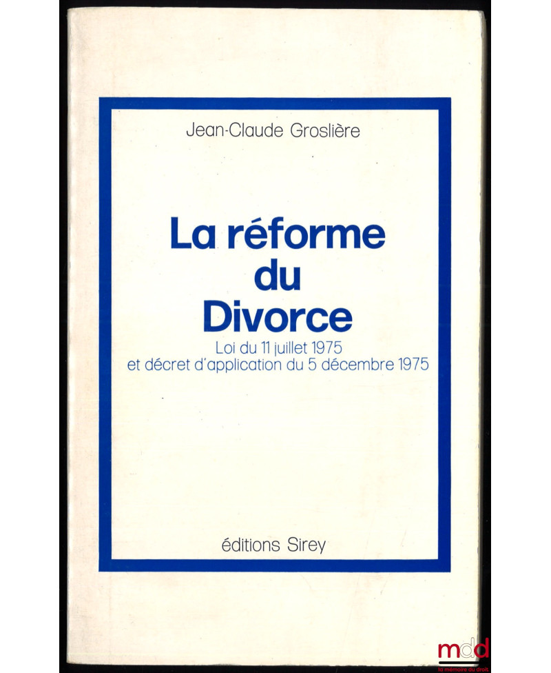 LA RÉFORME DU DIVORCE. Loi du 11 juillet 1975 et décret d’application du 5 décembre 1975
