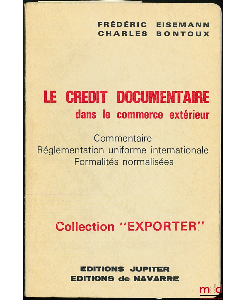 LE CRÉDIT DOCUMENTAIRE DANS LE COMMERCE EXTÉRIEUR, Commentaire, Réglementation uniforme internationale et Formules normalisées, coll. "Exporter",...