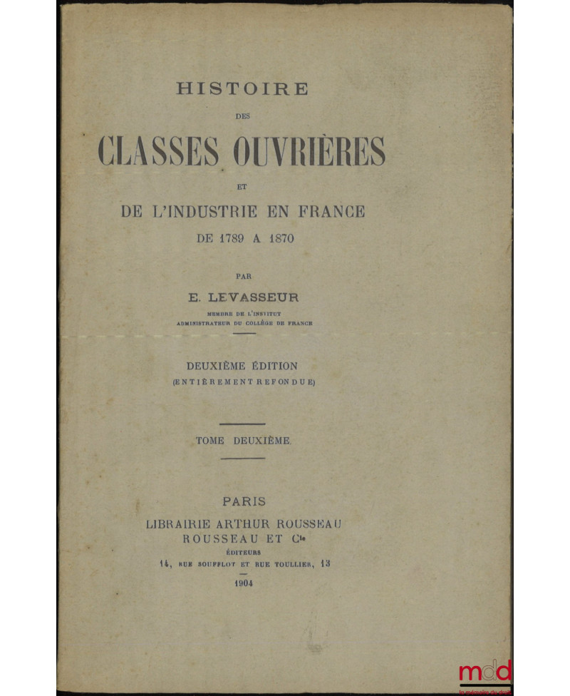 HISTOIRE DES CLASSES OUVRIÈRES ET DE L’INDUSTRIE EN FRANCE DE 1789 à 1870, 2e éd. (entièrement refondue), [t. II uniquement]