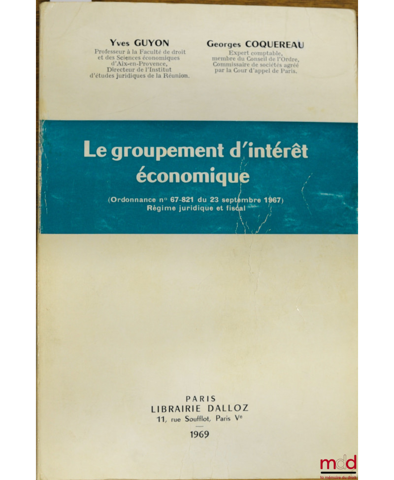 Quick view Add to cart Add to wishlist Add to compare Droit moderne (XX-XXIe siècles) GUYON (Yves) et COQUEREAU (Georges) LE GROUPEMENT D’INTÉRÊT ÉCONOMIQUE (Ordonnance n° 679821 du 23 septembre 1967) Régime juridique et fiscal Price LE GROUPEMENT D’INTÉRÊT ÉCONOMIQUE (Ordonnance n° 679821 du 23 septembre 1967) Régime juridique et fiscal