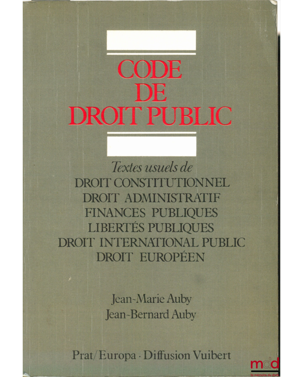 CODE DE DROIT PUBLIC, Textes usuels de Droit constitutionnel - Droit administratif - Finances publiques - Libertés publiques - Droit international public - Droit européen
