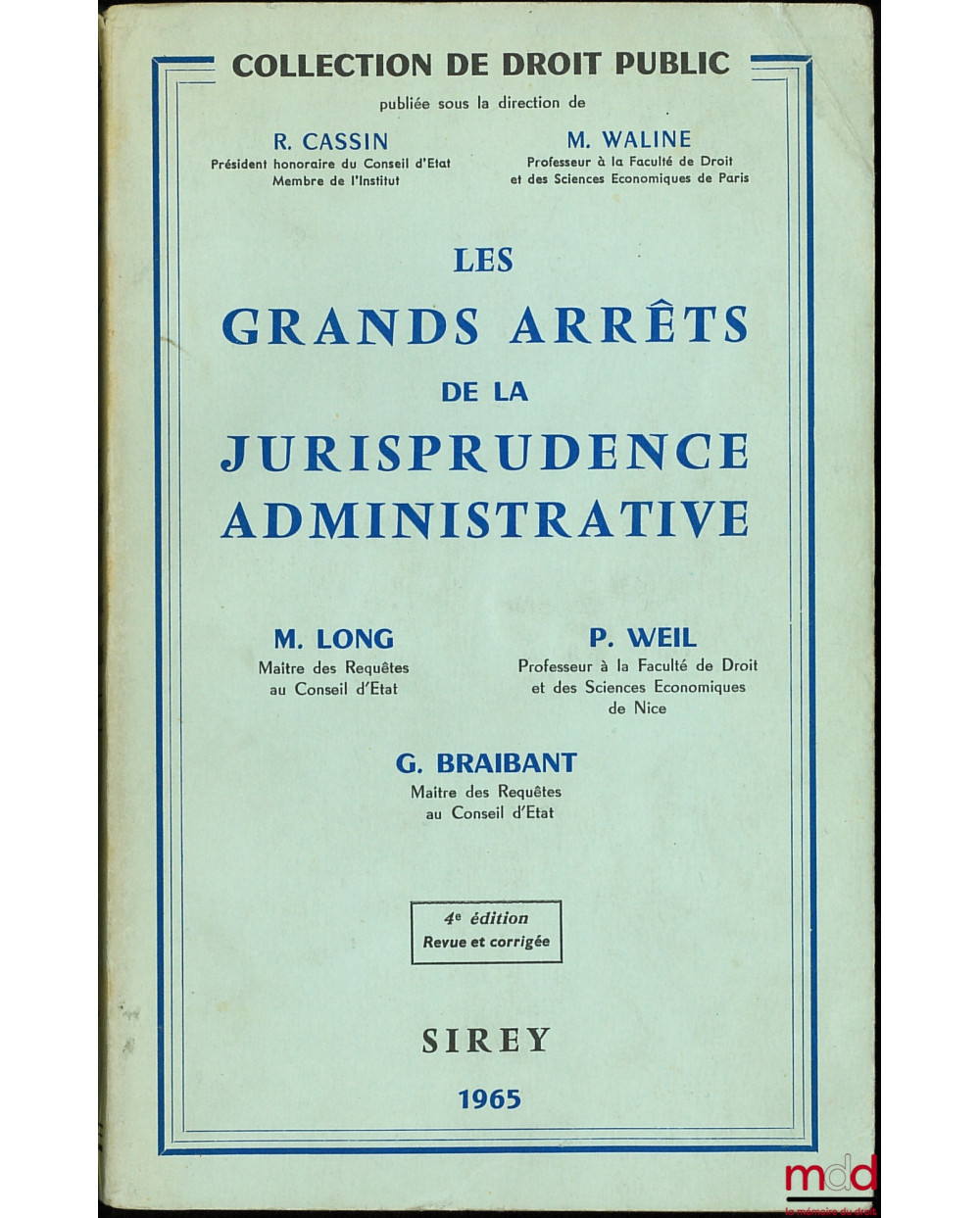 LES GRANDS ARRÊTS DE LA JURISPRUDENCE ADMINISTRATIVE, 4ème éd. revue et corrigée
