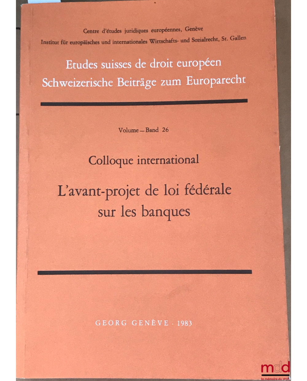 L’AVANT-PROJET DE LOI FÉDÉRALE SUR LES BANQUES, colloque internationale, Centre d’études juridiques européennes, Genève, Inst. pour le droit européen et international d’économie et de sc. sociales, St. Gallen