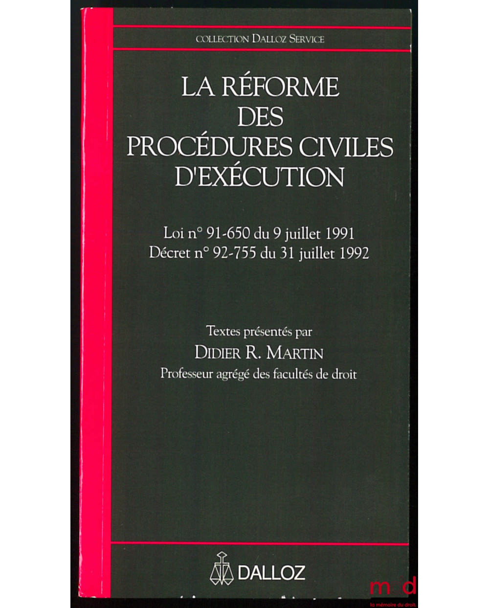 LA RÉFORME DES PROCÉDURES CIVILES D’EXÉCUTION, Loi n° 91-650 du 9 juillet 1991, décret n° 92-755 du 31 juillet 1992, coll. Dalloz Service