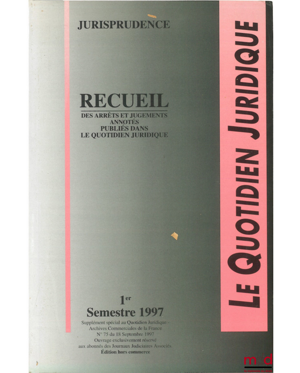 LE QUOTIDIEN JURIDIQUE, JURISPRUDENCE, Recueil des arrêts et jugements annotés publiés dans le Quotidien juridique, 1er semestre 1997, éd. hors commerce