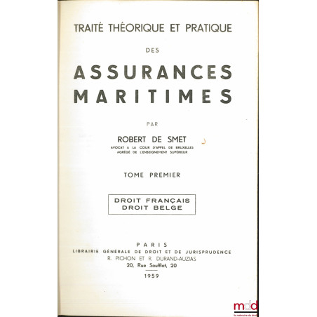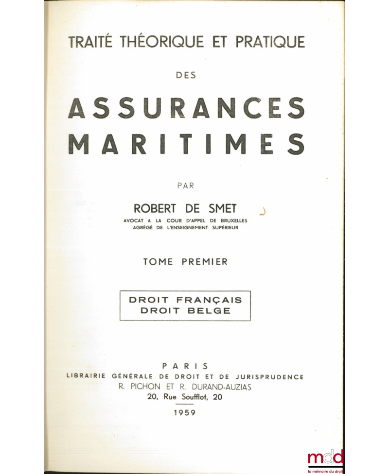 TRAITÉ THÉORIQUE ET PRATIQUE DES ASSURANCES MARITIMES. T. 1 : Droit français - Droit belge ; t. II : Droit anglais - Droit allemand - Droit argentin - Droit brésilien ; t. III : Droit danois - Droit espagnol - Droit grec - Droit italien - Droit japonais - Droit néerlandais - Droit norvégien - Droit portugais - Droit soviétique - Droit suédois