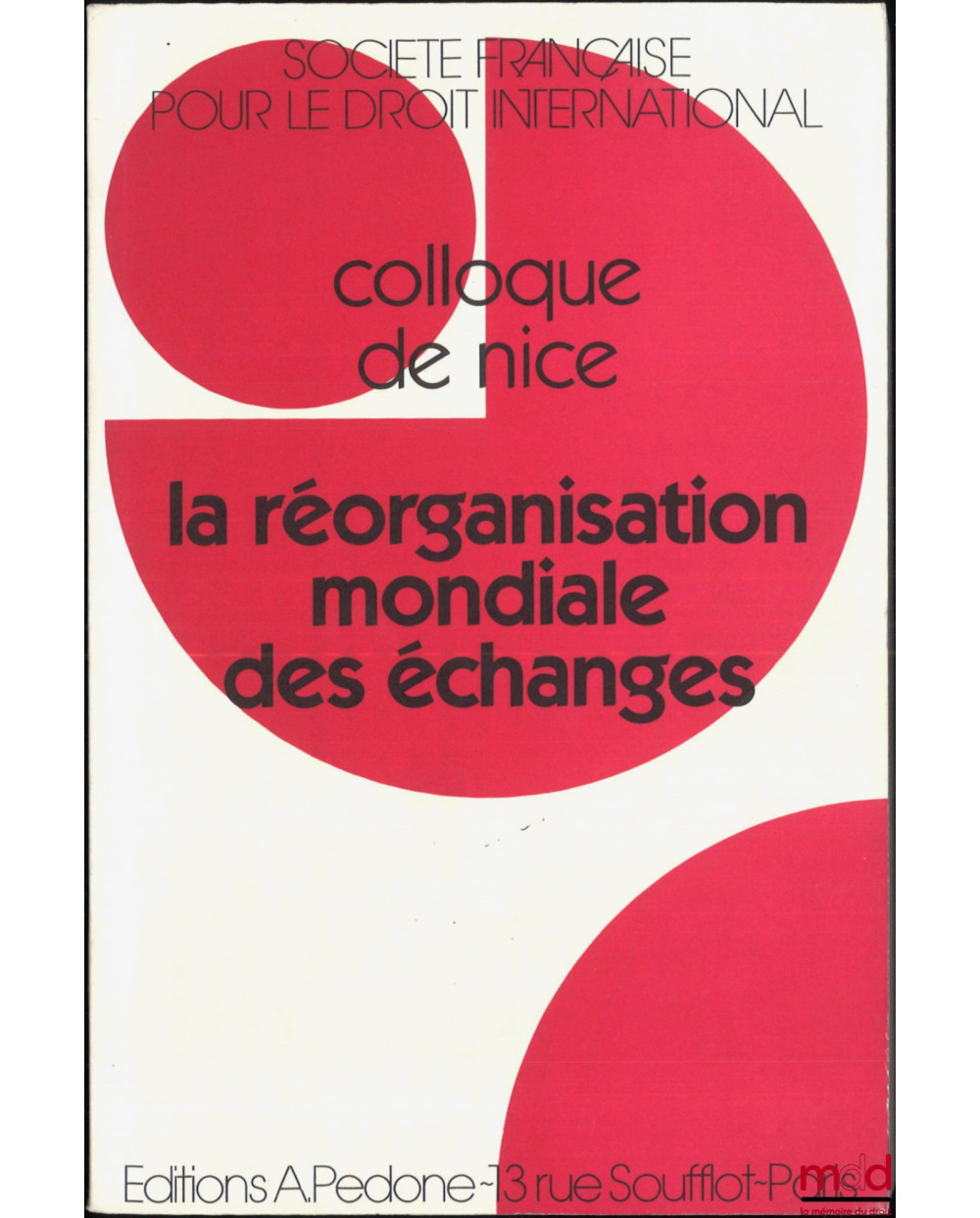 LA RÉORGANISATION MONDIALE DES ÉCHANGES, Colloque de Nice (1er au 3 juin 1995), coll. de la Société Française pour le Droit International