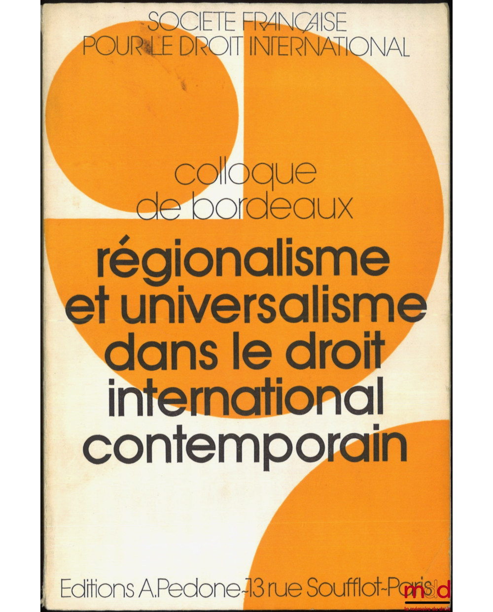 RÉGIONALISME ET UNIVERSALISME DANS LE DROIT INTERNATIONAL CONTEMPORAIN, Colloque de Bordeaux (20-22 mai 1976), coll. de la Société Française pour le Droit International