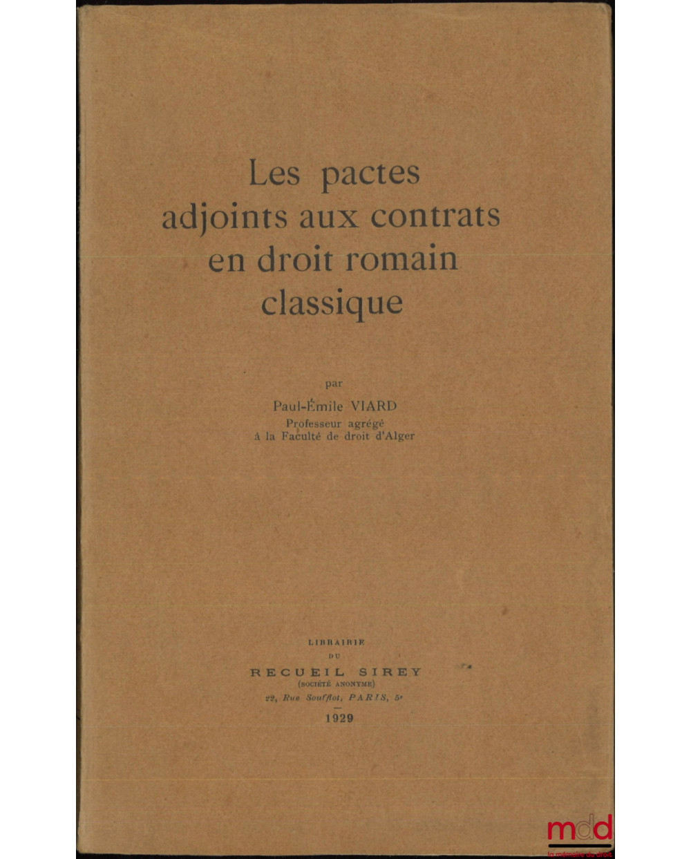 « La doctrine des pactes est l’un des aspects les plus intéressants et les moins connus du développement du droit romain, auquel la recherche moderne s’intéresse de plus en plus. C’est pourquoi l’étude approfondie et assidue du Français Viard, dont il est question ici, suscitera un intérêt particulier, parallèlement et en comparaison avec les travaux de l’Italien Guiseppe Grosso, que Viard n’a apparemment pas pu prendre en compte. Son travail mérite également d’être pris en considération parce que, suivant la méthode française de Girard, il laisse la recherche sur les interpolations plus en retrait que les recherches allemandes et italiennes. Malgré cela, Viard ne tombe pas dans le panégyrique, mais tente d’apporter un nouvel éclairage sur l’évolution historique en se penchant sur le contenu matériel des passages et sur l’interprétation des classiques. J’ai l’impression qu’il pense de manière trop dogmatique et moderne et qu’il est trop réservé dans la critique des textes ; malheureusement, il a également omis de faire appel à la source des basiliques, qui est justement importante pour notre sujet. Il ne faut pas s’attendre à ce qu’il ait eu connaissance de toute la littérature récente, étant donné l’ampleur du travail de recherche international sur le droit romain et la difficulté de la revue de la littérature - malgré cela, l’auteur cite abondamment la littérature -, mais il aurait dû à plusieurs reprises se confronter plus énergiquement avec ses prédécesseurs (cf. par exemple p. 113 ss.). Même si, comme on le verra, je suis en désaccord avec les résultats de l’auteur, je considère que son point de départ est très remarquable. » (Heinrich Stoll, Zeitschrift der Savigny-Stiftung für Rechtsgeschichte. Romanistische Abteilung, 1930).