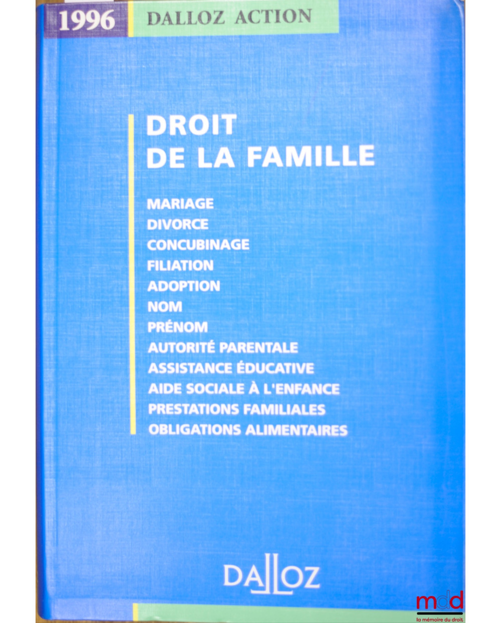 DROIT DE LA FAMILLE, coll. Dalloz Action, ouvrage rédigé sous la direction de J. Rubellin-Devichi