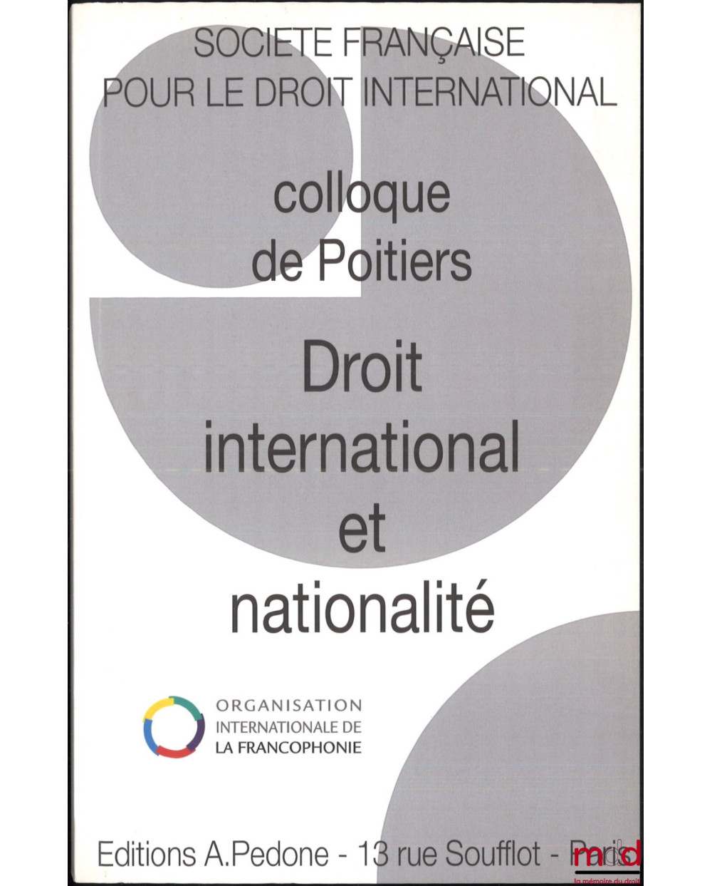 DROIT INTERNATIONAL ET NATIONALITÉ, Colloque de Poitiers (9 au 11 juin 2011), coll. de la Société Française pour le Droit international