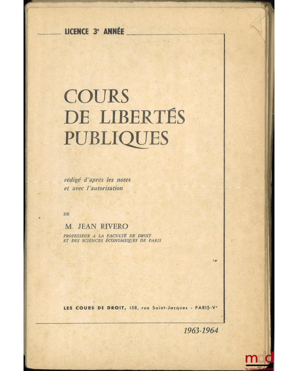 COURS DE LIBERTÉS PUBLIQUES, 1962-1963, Licence 3e année