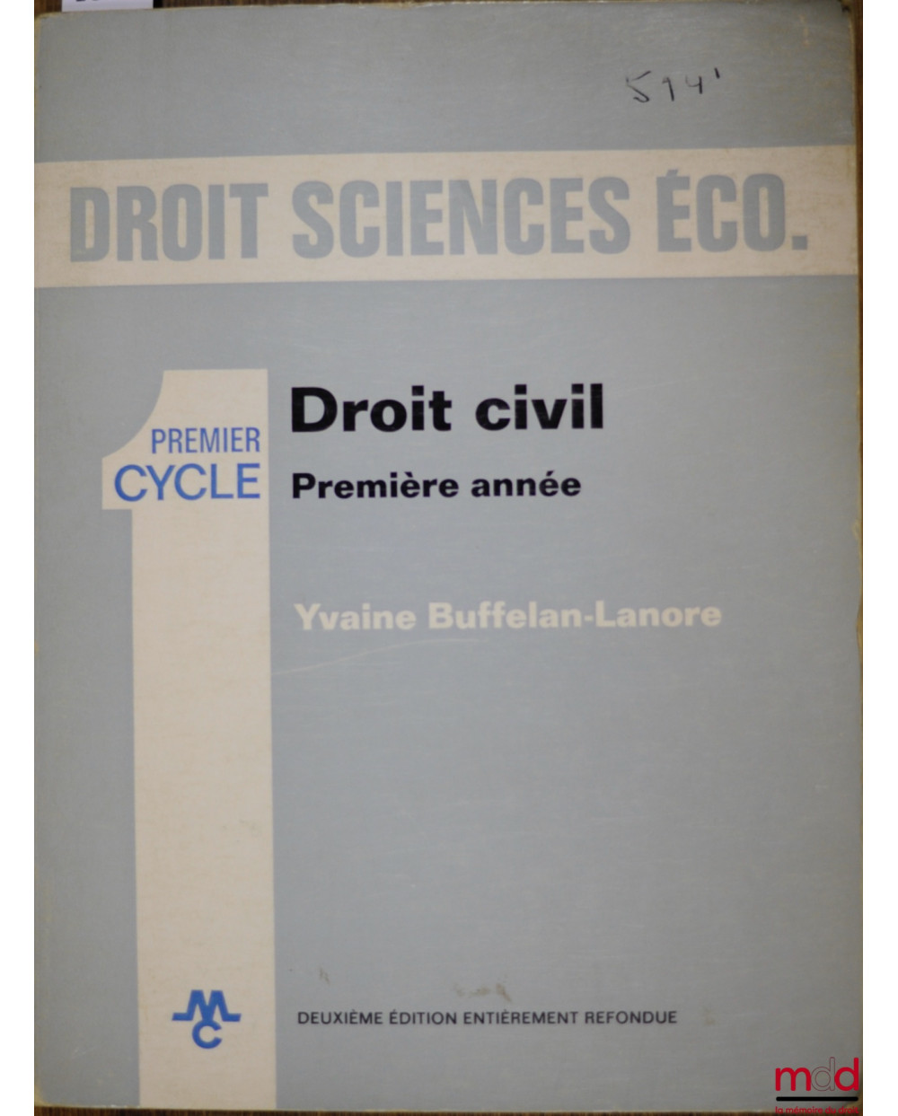 DROIT CIVIL PREMIÈRE ANNÉE, 2ème éd. entièrement refondue, coll. Droit sciences économiques