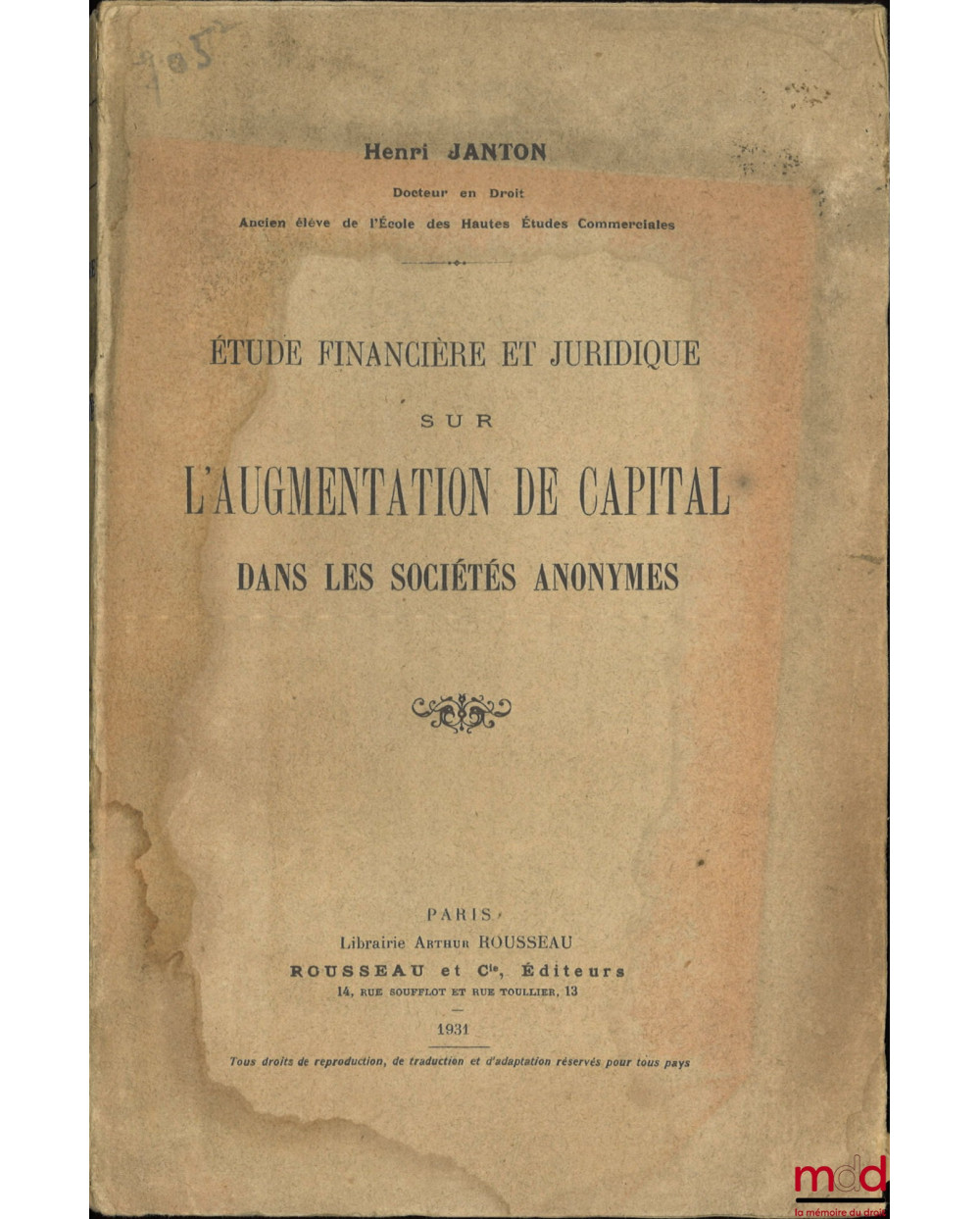 ÉTUDE FINANCIÈRE ET JURIDIQUE SUR L’AUGMENTATION DU CAPITAL DANS LES SOCIÉTÉS ANONYMES