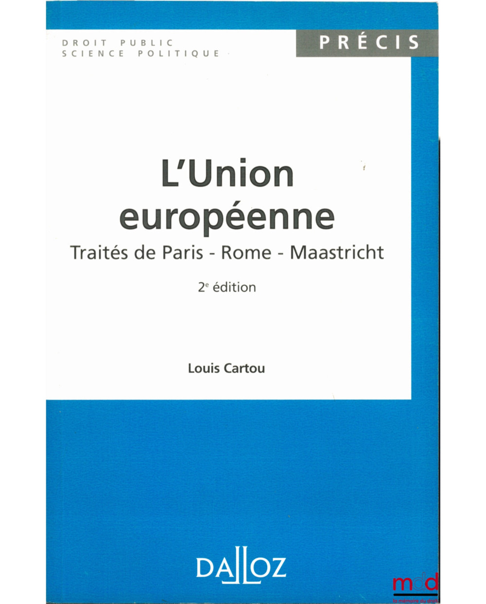 L’UNION EUROPÉENNE - TRAITÉS DE PARIS - ROME - MAASTRICHT, 2ème éd., coll. Précis Dalloz / Droit public - science politique