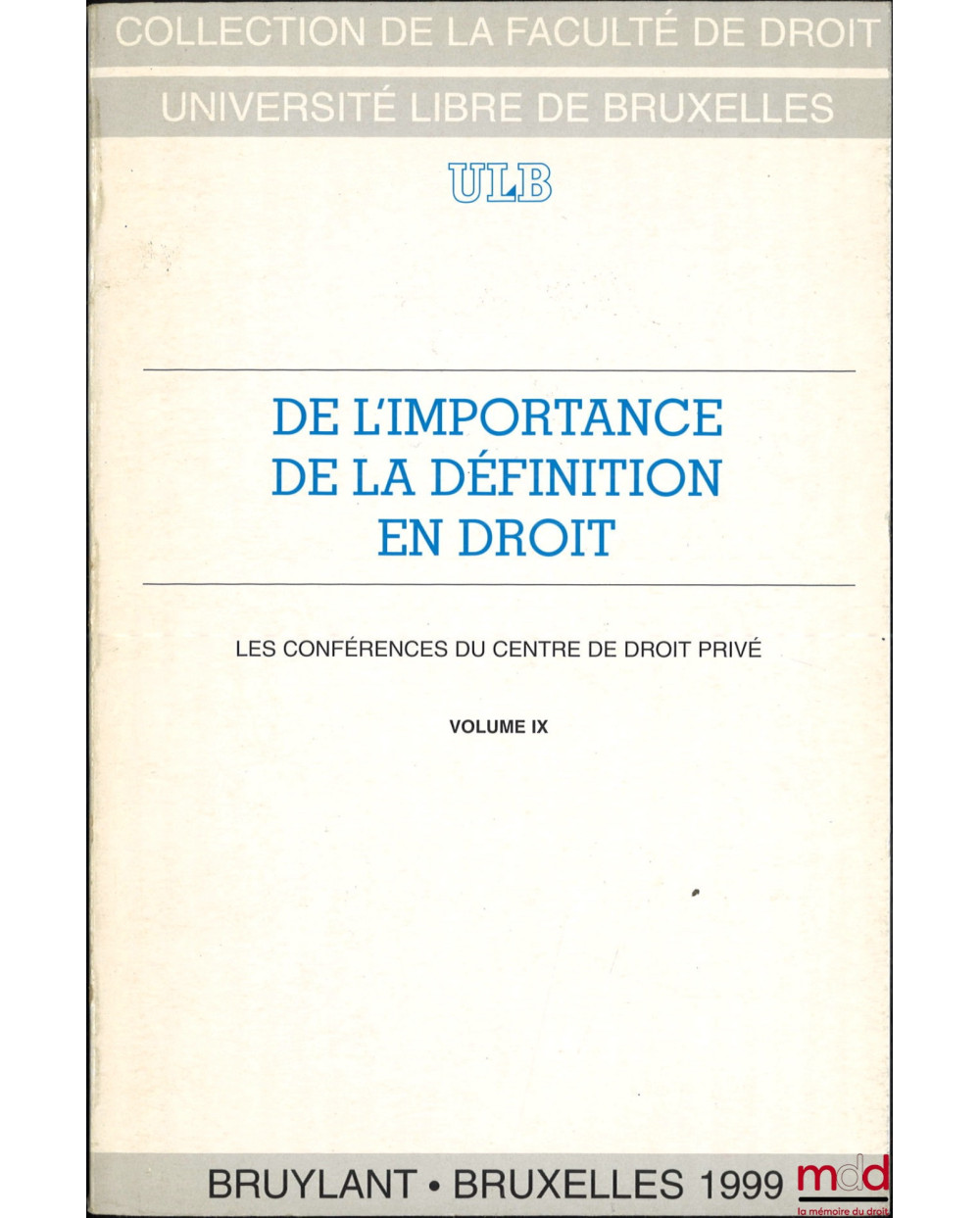 DE L’IMPORTANCE DE LA DÉFINITION EN DROIT, Les Conférences du Centre de droit privé, vol. IX, coll. de la Faculté de Droit - Université libre de Bruxelles