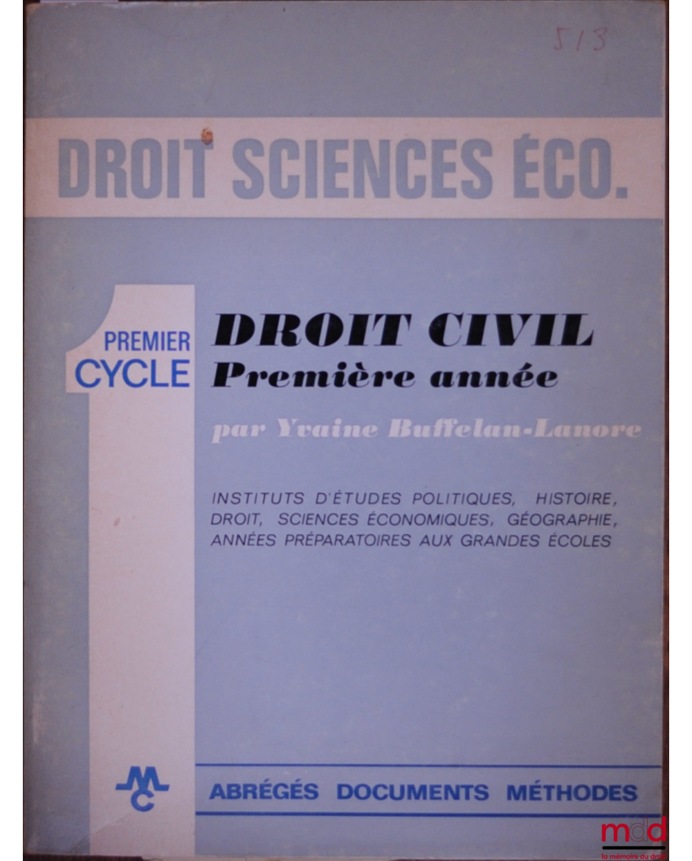 DROIT CIVIL PREMIÈRE ANNÉE, coll. Droit sciences économiques, Abrégés documents méthodes
