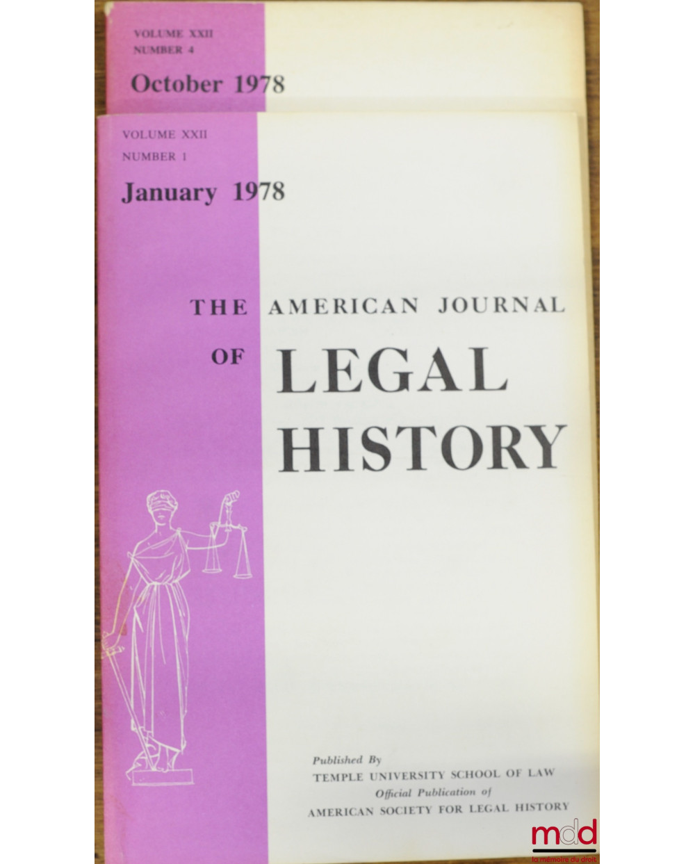 THE AMERICAN JOURNAL OF LEGAL HISTORY, janvier et octobre 1978, vol. XXII, n° 1 (et n° 4, The roman law of marriage)