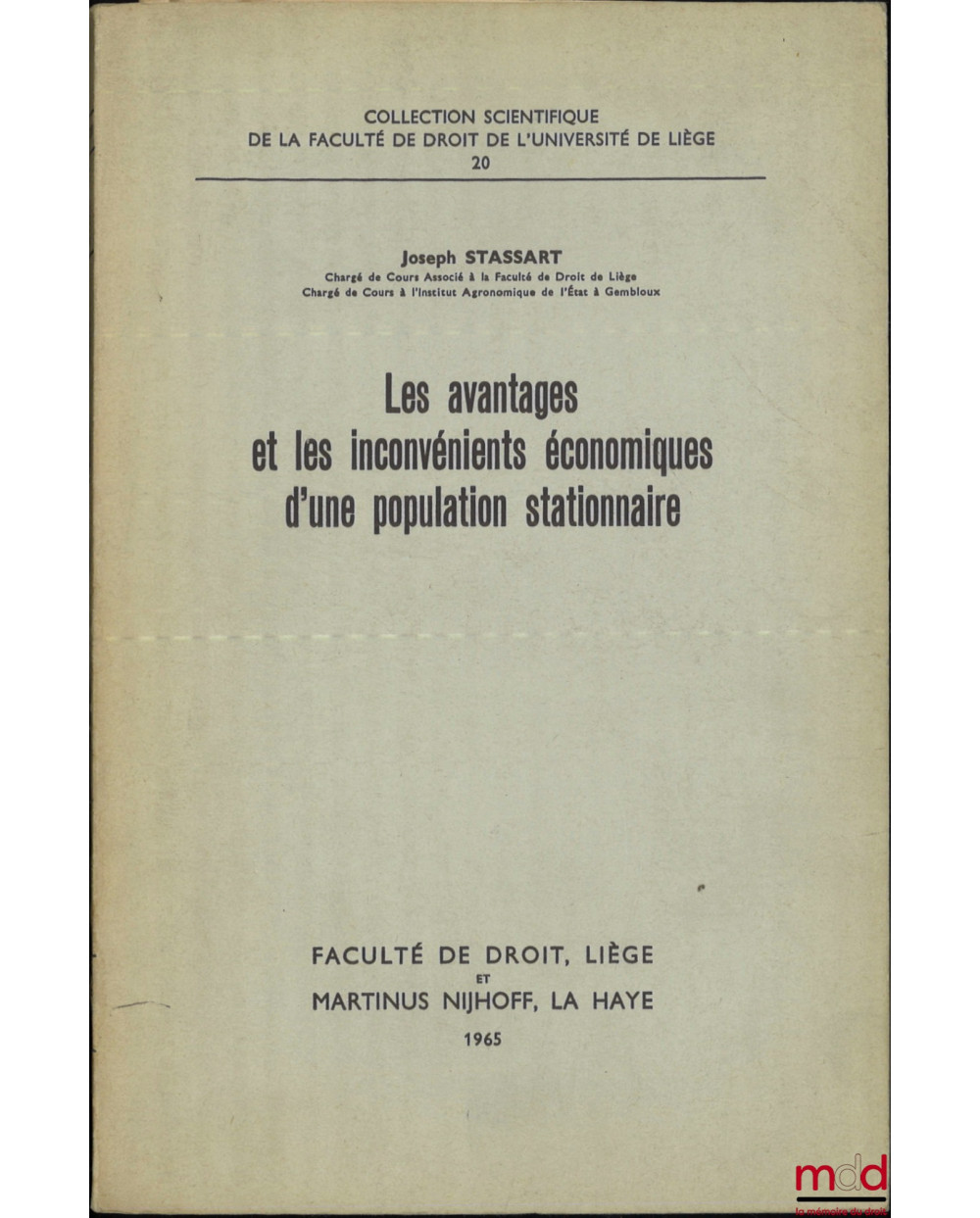 LES AVANTAGES ET LES INCONVÉNIENTS ÉCONOMIQUES D’UNE POPULATION STATIONNAIRE, Coll. scientifique de la Faculté de droit de l’Université de Liège, n° 20