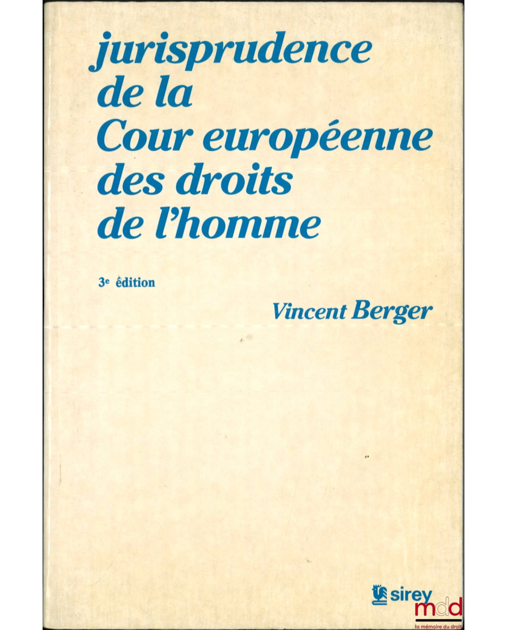 JURISPRUDENCE DE LA COUR EUROPÉENNE DES DROITS DE L’HOMME, Préfaces de Louis-Edmond Pettiti, 3e éd.