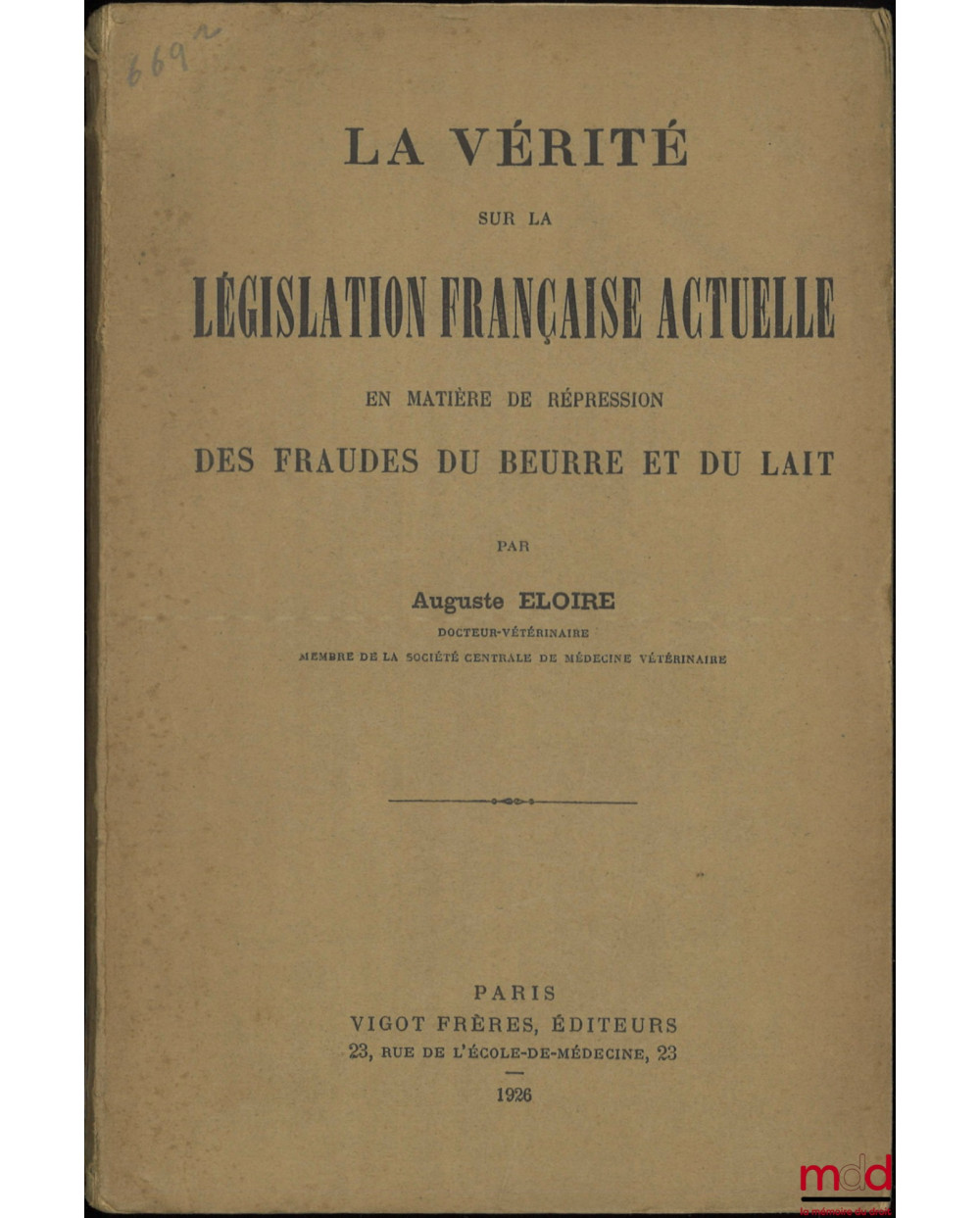 LA VÉRITÉ SUR LA LÉGISLATION ACTUELLE EN MATIÈRE DE RÉPRESSION DES FRAUDES DU BEURRE ET DU LAIT