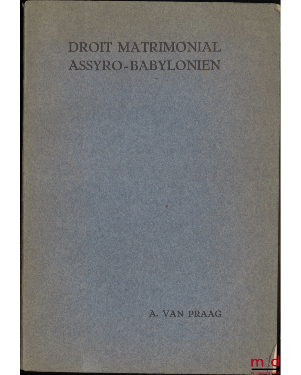 Importante monographie sur la famille dans le monde assyro-babylonien. L’auteur s’efforce de préciser une fois de plus la terminologie : tirhatu, don fait par le fiancé au père de la fiancée, et non prix d’achat; seriqtu, dot, qui restera toujours la propriété de la femme; nudunnû, don du mari à sa femme, pouvant revenir aux enfants; dumâqi, bijoux qu’un mari fait porter à sa femme. Pour van Prag, un contrat était généralement exigé pour que le mariage fût reconnu comme tel et c’est précisément la tirhatu qui en prouvait l’existence. Le domicile de la femme est variable : dans la maison de son père, dans la maison de son mari, mais il arrive aussi que l’épousée ait sa maison à elle.