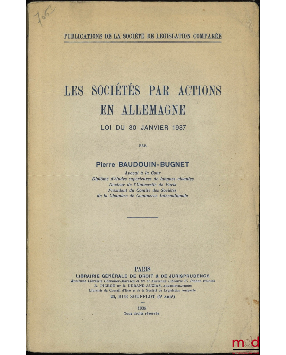 LES SOCIÉTÉS PAR ACTIONS EN ALLEMAGNE, LOI DU 30 JANVIER 1937
